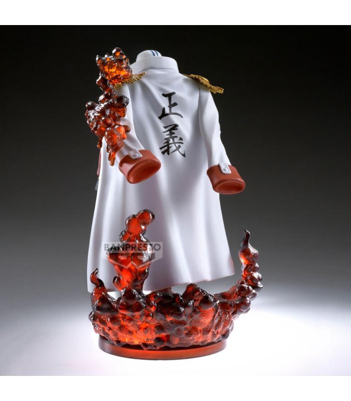 Fabricada en PVC de alta calidad, con acabados minuciosos que reflejan fielmente el uniforme de la Marina, su expresión autoritaria y los efectos translúcidos que simulan lava. Pensada para coleccionistas que valoran el detalle.