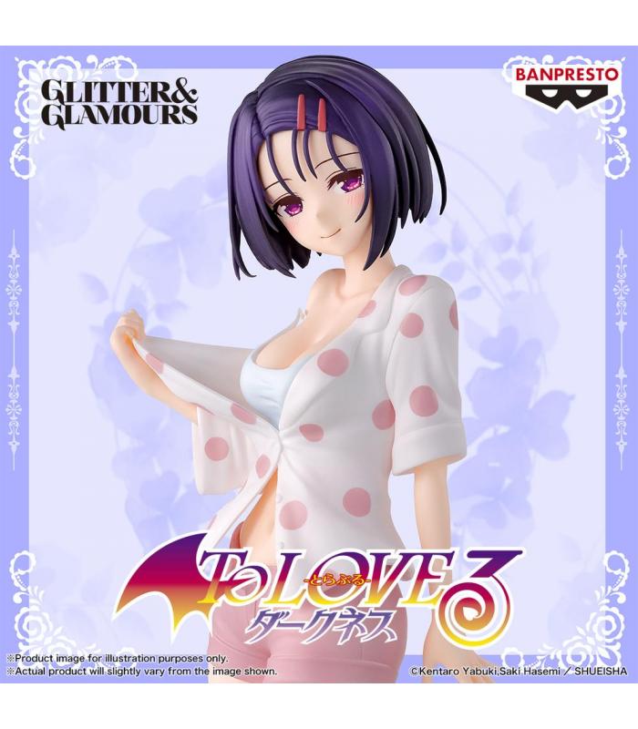 Figura coleccionable de Haruna Sairenji de *To LOVEru Darkness*, perteneciente a la línea GLITTER&,GLAMOURS. Esta figura presenta al personaje en una pose elegante y estilizada, resaltando su belleza y carisma con un diseño pensado para destacar en cualquier colección de anime.