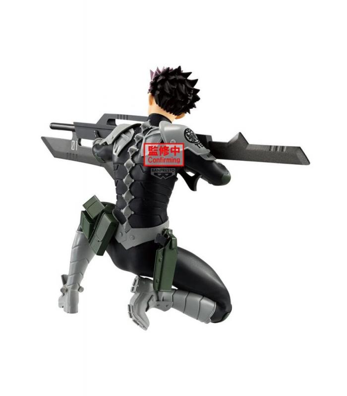Con una altura de 14 cm, esta figura destaca por su pose dinámica de combate y su expresión intensa. El esculpido resalta el uniforme de batalla y la actitud decidida de Gen Narumi, capturando toda la energía del personaje en acción.