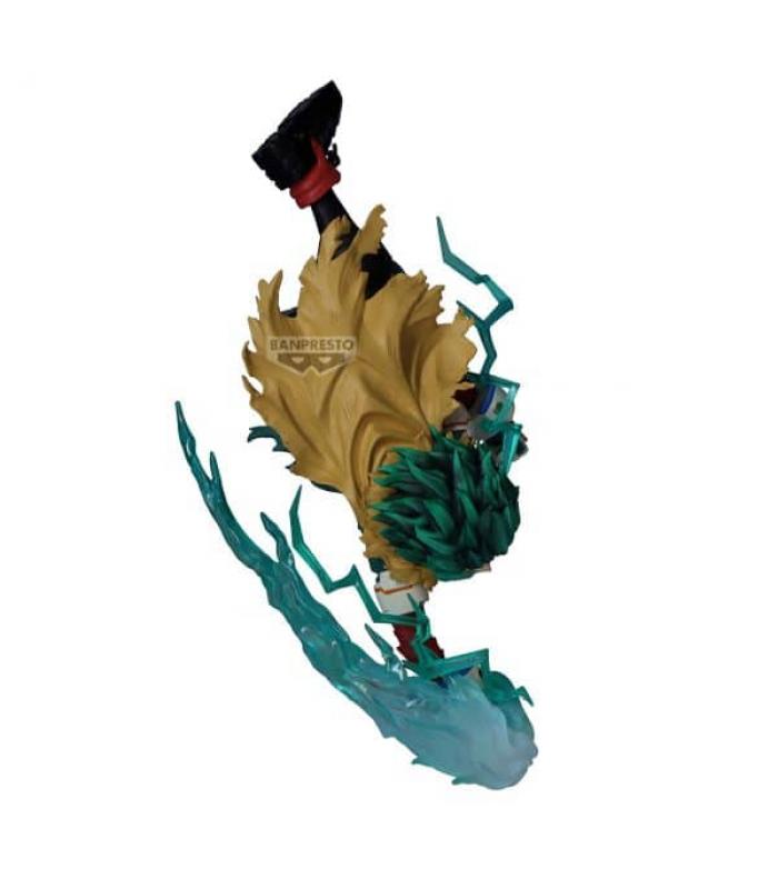 La figura está esculpida con gran precisión para representar fielmente el traje de héroe de Deku y su expresión decidida. La posición de combate y los detalles del vestuario reflejan fielmente la evolución del personaje.