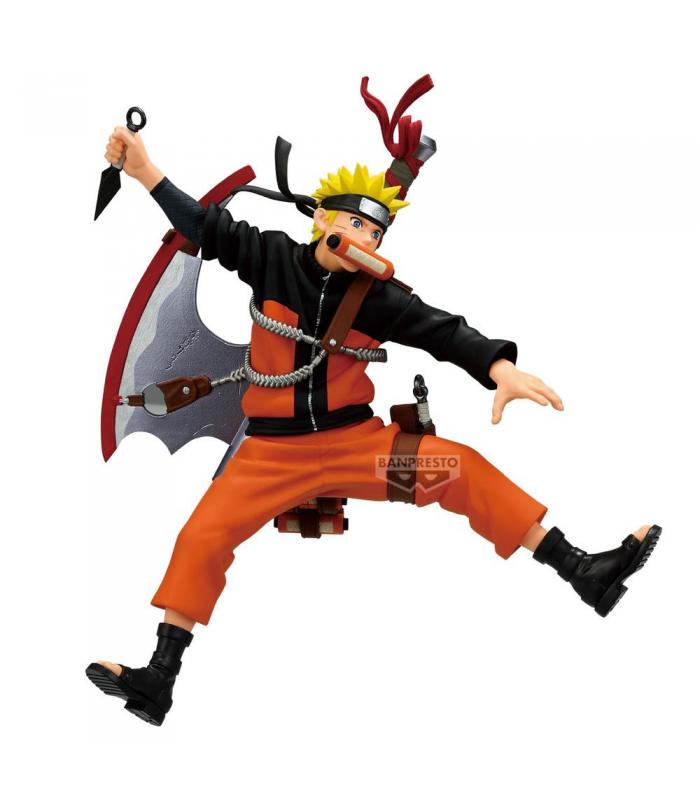 Figura dinámica de Naruto Uzumaki perteneciente a la colección “VIBRATION STARS”, dentro de la línea conmemorativa “-NARUTO 72 series-”. Captura a Naruto en una pose de combate en pleno movimiento, con su clásica vestimenta naranja y detalles como la banda ninja de Konoha, el kunai en mano y expresión determinada.