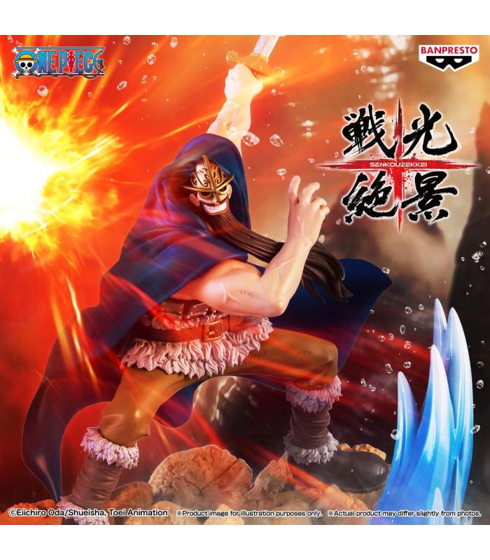 Figura de Dorry, uno de los gigantes guerreros de Elbaf, perteneciente a la línea ONE PIECE SENKOZEKKEI. Representa al personaje en una poderosa postura de batalla, capturando su espíritu vikingo y su fuerza descomunal.