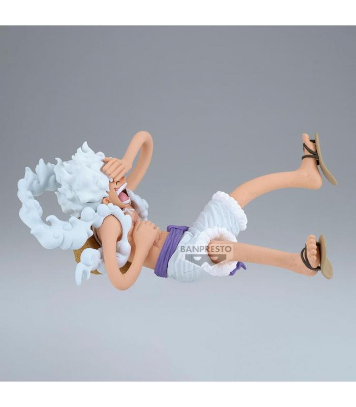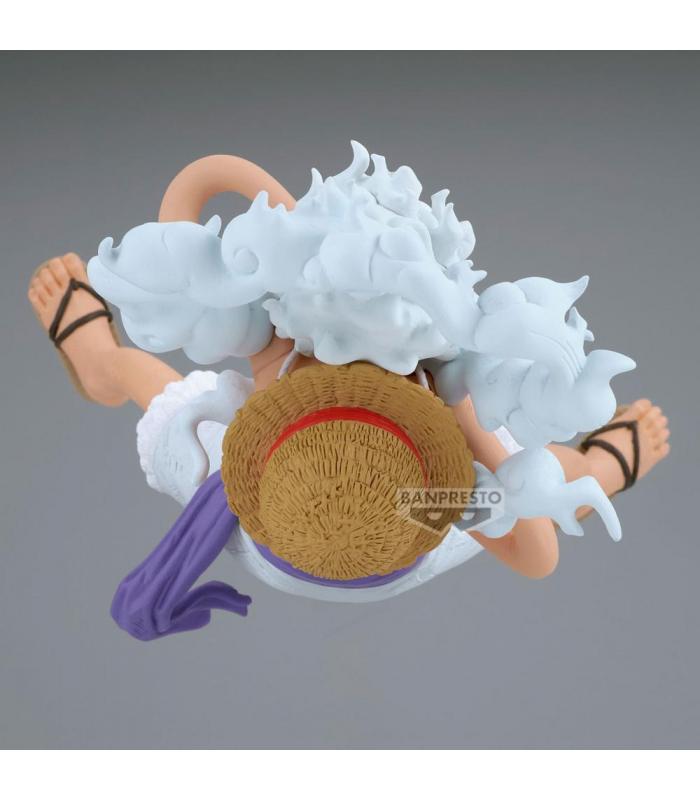 Figura de Monkey D. Luffy en su forma Gear 5, perteneciente a la línea ONE PIECE KING OF ARTIST. Representa al protagonista en su estado más reciente y poderoso, mostrando toda la energía y libertad de su transformación inspirada en la mitología del dios del sol.