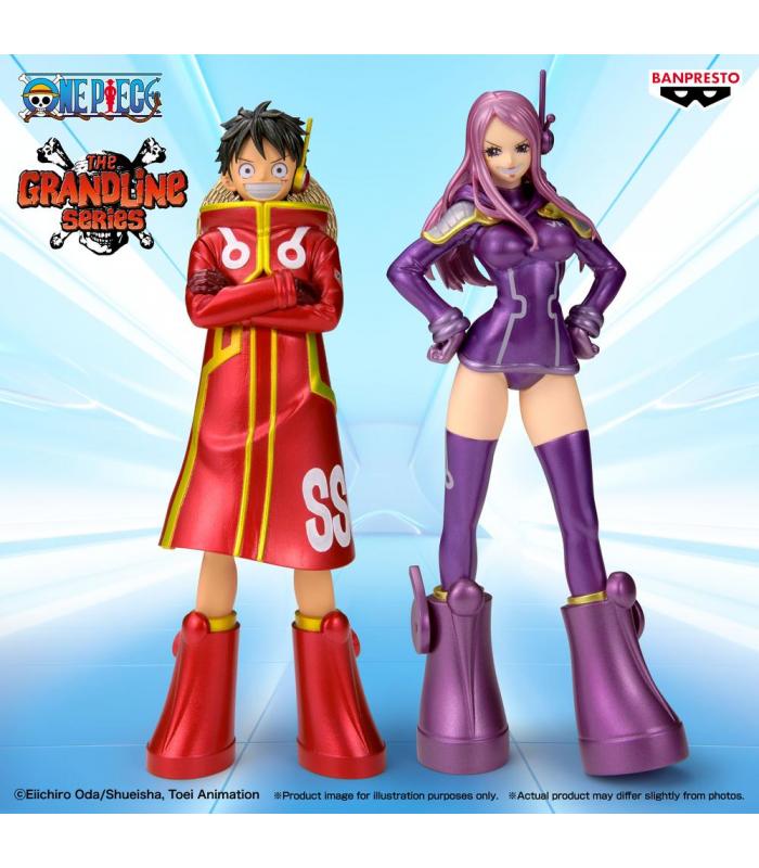 Figura de Monkey D. Luffy perteneciente a la colección ONE PIECE DXF THE GRANDLINE SERIES, en su versión A del set junto a Jewelry Bonney. Representa al capitán de los Sombrero de Paja con su característico estilo aventurero y expresión confiada.
