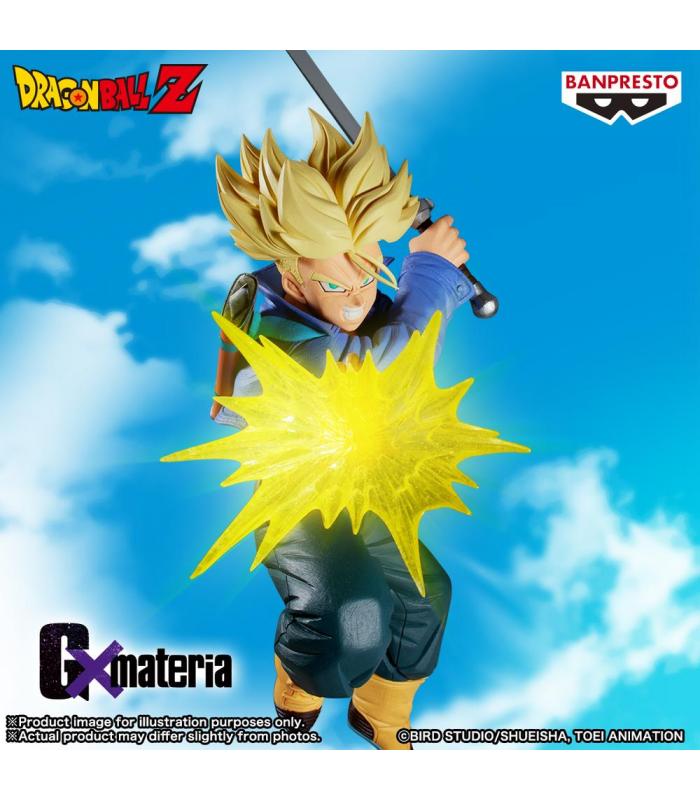 Figura de Trunks del futuro, basada en su aparición en Dragon Ball Z, perteneciente a la línea G×materia. Representa al personaje en plena acción desatando un potente ataque energético, capturando su fuerza y determinación en combate.