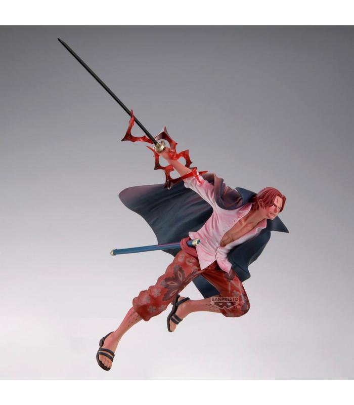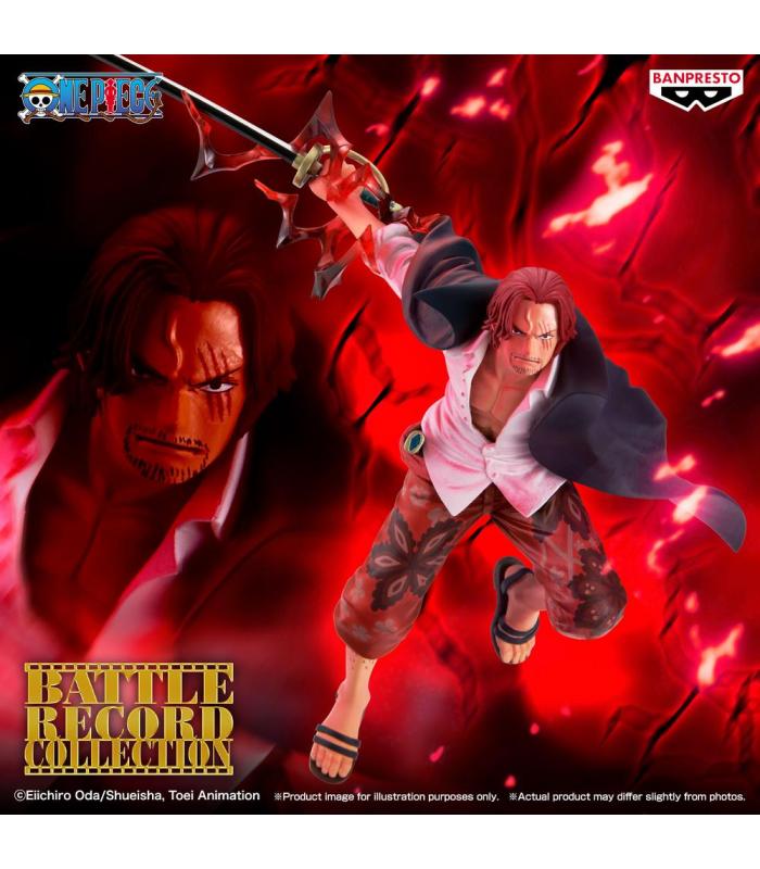 Figura de Shanks en su versión especial, perteneciente a la línea ONE PIECE BATTLE RECORD COLLECTION. Representa al emperador del mar con una pose imponente y lista para el combate, capturando toda su autoridad, elegancia y poder como uno de los personajes más emblemáticos de One Piece.