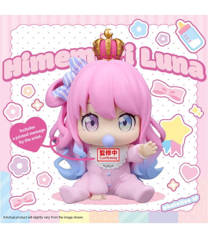 Peluche de colección que representa a Himemori Luna en su versión bebé dentro de la línea “#hololive IF -holobabies-”. Su diseño chibi incluye su característico cabello rosa con moñitos, corona diminuta y un atuendo real adaptado al estilo infantil, ofreciendo una apariencia tierna y encantadora.
