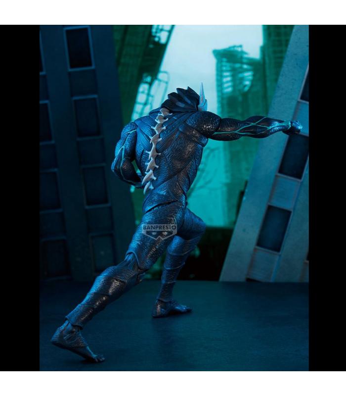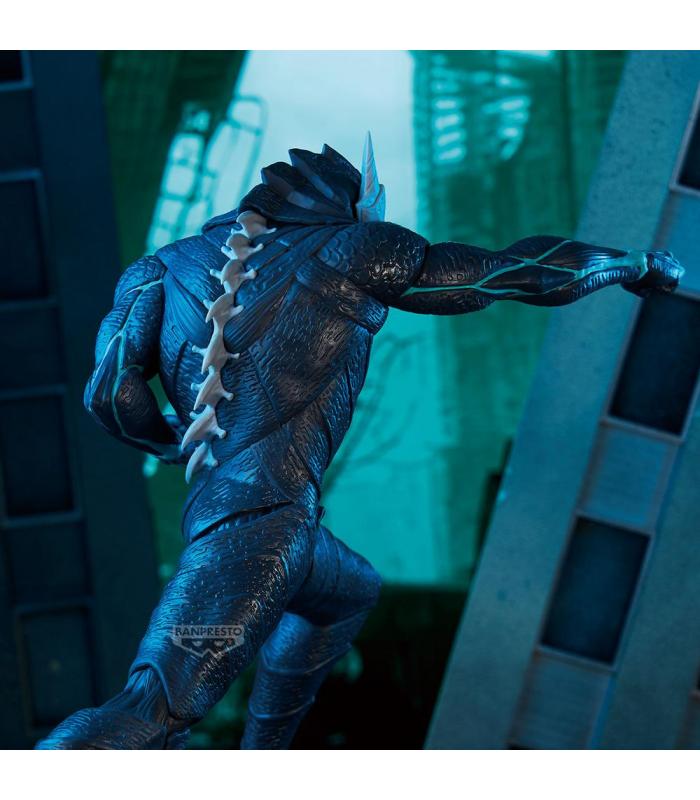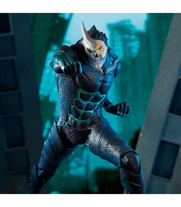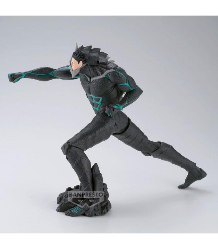 Escultura detallada que muestra a Kafka en su forma de Kaiju No. 8 con su característico cuerpo musculoso, detalles biomecánicos y expresión feroz. La postura transmite tensión y fuerza, con acabados texturizados en el cuerpo que simulan la piel y placas de kaiju con gran realismo.