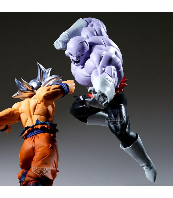 Figura de Dragon Ball Super que representa a Jiren en plena acción durante su enfrentamiento contra Son Goku en estado Ultra Instinto. Su pose refleja poder y concentración, con un esculpido que destaca su musculatura y aspecto intimidante.