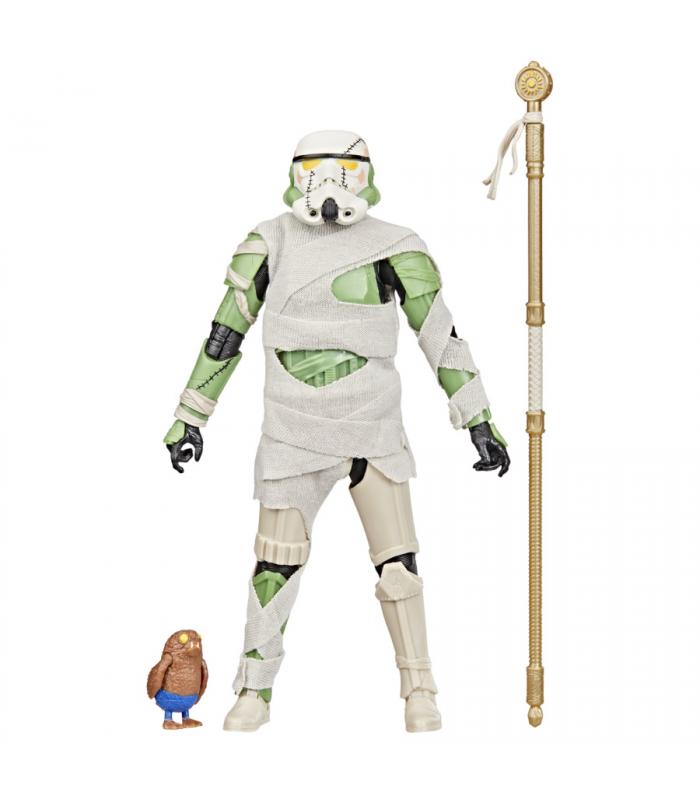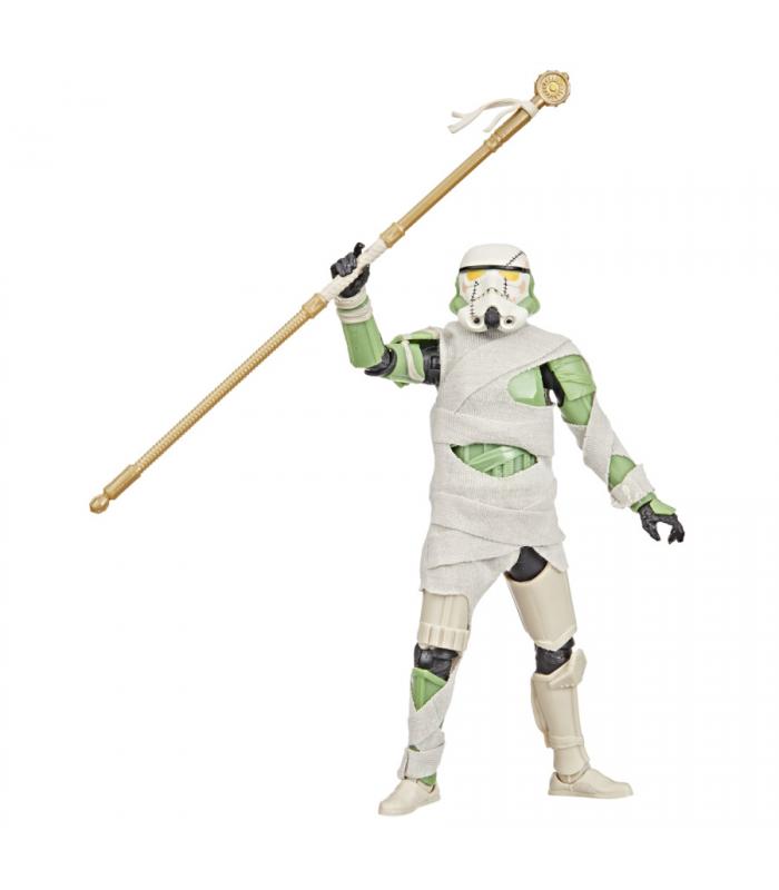 El Night Trooper llega con una apariencia singular: una **armadura verde** envuelta en tela al estilo de las **momias**, que aporta un toque tenebroso y original. Esta reinterpretación visual lo convierte en un personaje único dentro del universo The Black Series.