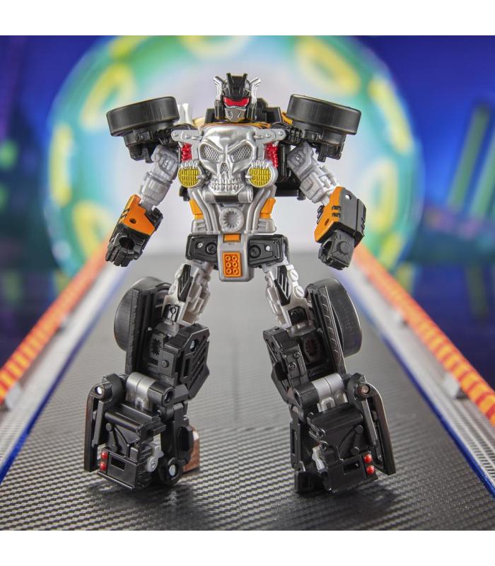 Esta figura de acción se transforma con facilidad de modo robot a coche Bone Shaker™ en 22 pasos. El diseño mantiene la esencia rat-rod de Hot Wheels®, con detalles como llamas decorativas e imponente parrilla en forma de calavera. Cada modo muestra una personalidad distinta y fiel a ambos universos.