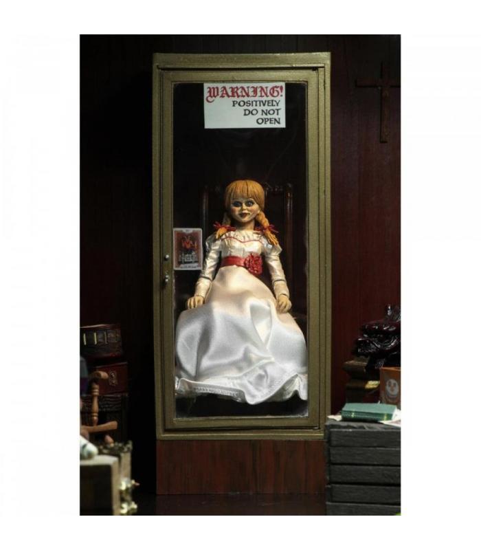 NECA amplía su colección de terror con el lanzamiento de la segunda figura Ultimate de la línea The Conjuring Universe. Annabelle, la muñeca poseída, es un personaje recurrente en las películas de The Conjuring Universe y sus spin-offs. Esta figura totalmente articulada mide aproximadamente 15 centímetros de alto y recrea fielmente la apariencia de la muñeca que aparece en la película Annabelle Comes Home. Lleva una falda de tela suave e incluye cabezas intercambiables, además de accesorios como su silla y su estuche de museo. La figura se presenta en una caja de exhibición especialmente diseñada para coleccionistas. Estas figuras no son juguetes para niños. Destinadas solo para adultos.