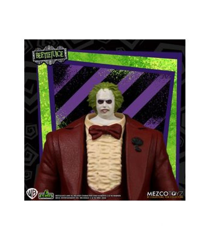 La figura Beetlejuice Red Tux de Mezco es una pieza imprescindible para fans del cine clásico y coleccionistas. Inspirada en la icónica escena de la boda de la película "Beetlejuice" (1988), esta figura destaca por su diseño detallado y estilo retro dentro de la reconocida línea 5 Points. Compacta y fiel al personaje, es ideal tanto para exposición como para ampliar cualquier colección.
