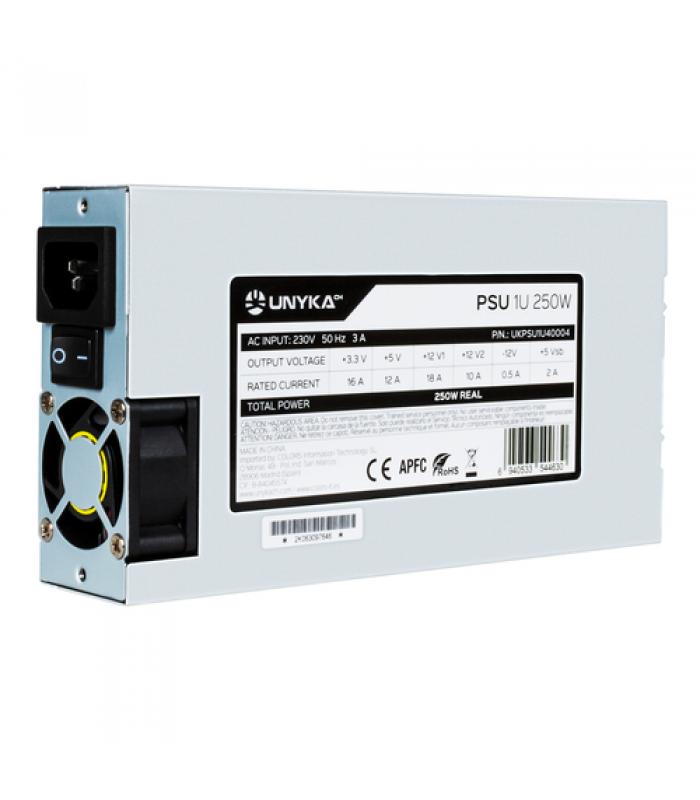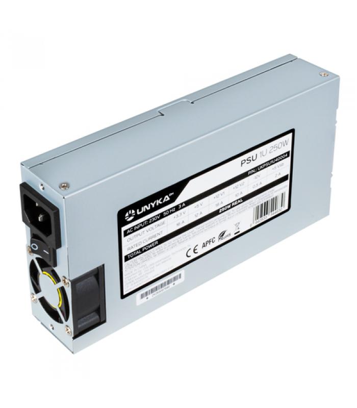 Fuente de alimentación de formato FLEX 1U estándar, ideal para caja rack de 19" 1U. Construido con materiales de gran calidad, proporciona una potencia de 250W.