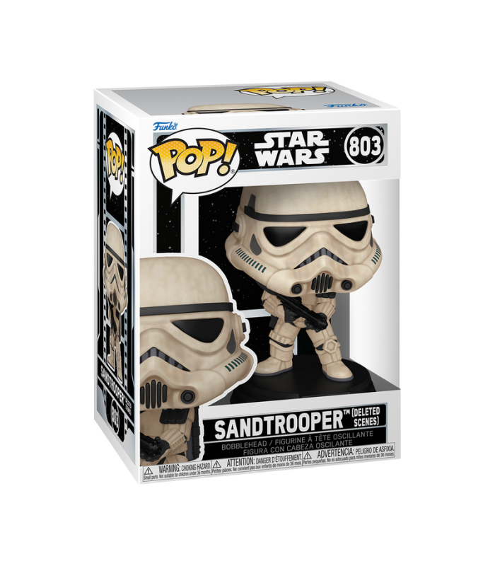 Con su posado dinámico y su acabado detallado, el Pop! Sandtrooper (Deleted Scenes) conmemora el cuidado y la creatividad que dieron forma a una de las sagas más emblemáticas del cine. La frase "Check that one." está directamente vinculada a la escena que inspiró esta figura, aportando un toque narrativo y distintivo.