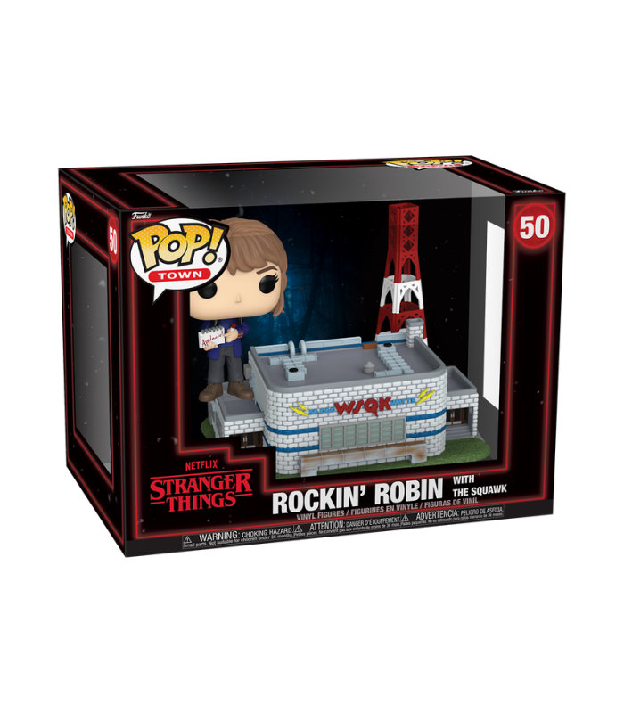 El Pop! Town Rockin' Robin with The Squawk celebra los eventos, personajes y momentos clave de la **quinta y última temporada de Stranger Things**, ofreciendo una representación exclusiva que captura la esencia del desenlace de la saga. Es una pieza que combina nostalgia, misterio y diseño en una sola figura.