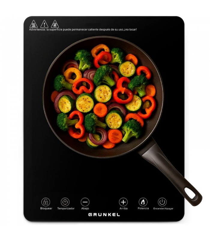 La placa de cocción por infrarrojos GRUNKEL IFR-2000 es una opción moderna, potente y segura para cocinar en cualquier lugar. Su tecnología por infrarrojos calienta de forma directa y uniforme, sin necesidad de utensilios especiales, lo que la hace compatible con todo tipo de ollas y sartenes. Con una potencia de hasta 2000W y 8 niveles ajustables, ofrece un control preciso para diferentes recetas, desde cocción lenta hasta hervidos rápidos. Su superficie de cristal negro de 29×37 cm con marco plateado aporta elegancia y resistencia. Incluye control táctil intuitivo, temporizador programable de hasta 3 horas y bobina calentadora de alta calidad para una mayor durabilidad. Además, incluye bloqueo de seguridad infantil para una mayor tranquilidad en el hogar. Ideal para cocinas pequeñas, apartamentos, segundas residencias o como complemento portátil. Gracias a su tamaño compacto y fácil manejo, es perfecta para quienes buscan versatilidad, eficiencia y estilo en una placa eléctrica moderna.Rendimiento