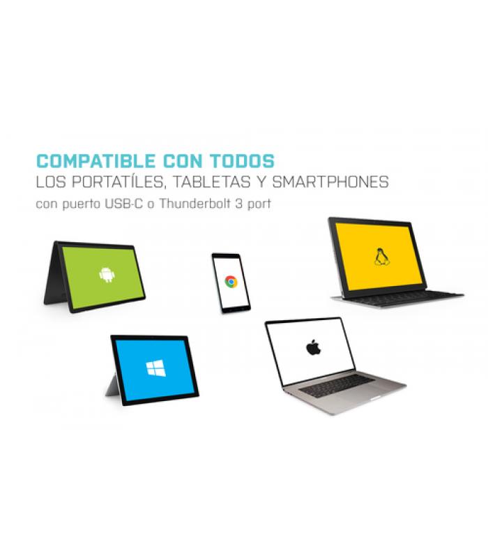 Conecte el replicador de puertos con un solo cable (10 cm) al puerto USB-C o Thunderbolt 3 de la computadora y podrá comenzar a usarlo inmediatamente. La instalación del controlador es automática desde el sistema.