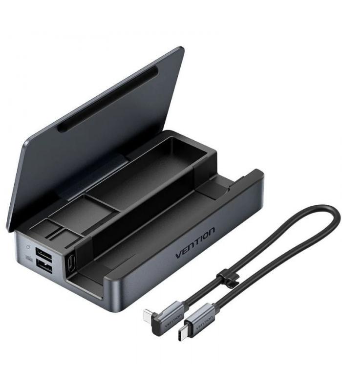 VENTION - Docking USB Tipo-C para Steam Deck / Switch Vention TPZH0/ 2xHDMI 4K/ 3xUSB/ 1xUSB Tipo-C/ 1xUSB Tipo-C PD/ 1xRJ45/ 1xLector Tarjetas/ Gris