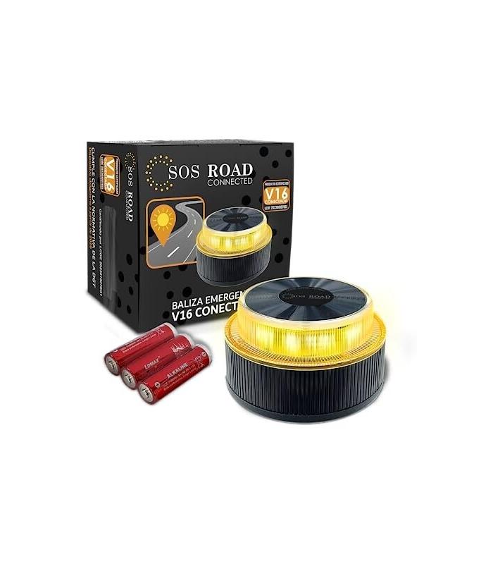 SOS ROAD - Luz baliza de emergencia para coche SOS Road Connected EL2024 V16/ Homologada/ Base Imantada/ Geolocalizable/ Funciona a Pilas
