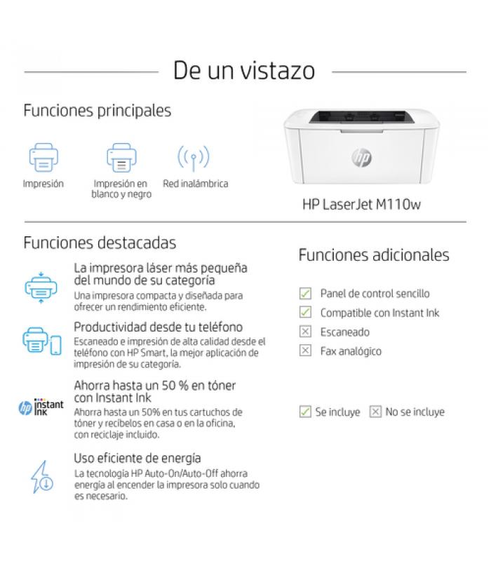 Una impresora láser eficiente y de gran calidad que se adapta a tu espacio y presupuesto. Obtén una impresión rápida con la impresora láser más pequeña del mundo de su categoría[1], así como un gran ahorro de tiempo gracias a la aplicación HP Smart.[2,3] Disfruta de una impresión láser de calidad profesional y configuración sencilla.