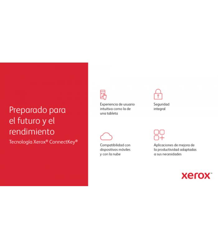 Gracias a su **pantalla táctil de 7"**, el usuario puede navegar de forma intuitiva entre las funciones, personalizar accesos directos y utilizar las aplicaciones del ecosistema Xerox para mejorar los procesos de trabajo. Incluye herramientas como **SIQA**, estado en tiempo real y ajustes avanzados del controlador.