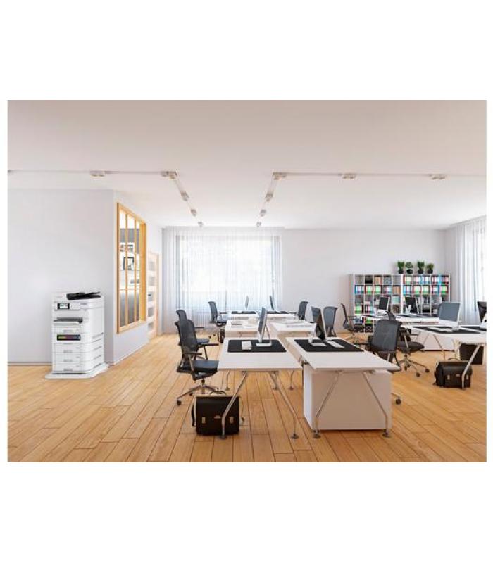 La Epson WorkForce Pro EM-C8101RDWF es una impresora multifunción color A3 diseñada para entornos profesionales con altos volúmenes de trabajo. Gracias a su tecnología PrecisionCore Heat-Free y al sistema Replaceable Ink Pack System (RIPS), ofrece impresión, copia, escaneo y fax con gran eficiencia, rapidez y bajo mantenimiento. Es una solución ideal para oficinas, departamentos administrativos y empresas que necesitan productividad constante y conectividad avanzada.