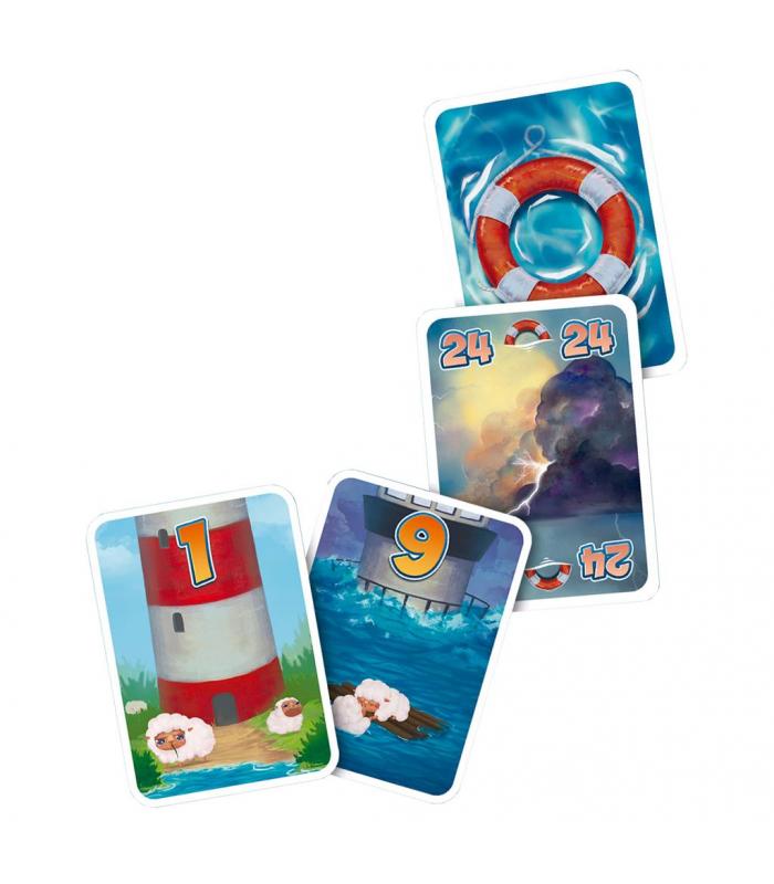 60 cartas de tiempo - 24 cartas de nivel de marea - 24 cartas de salvavidas - 1
