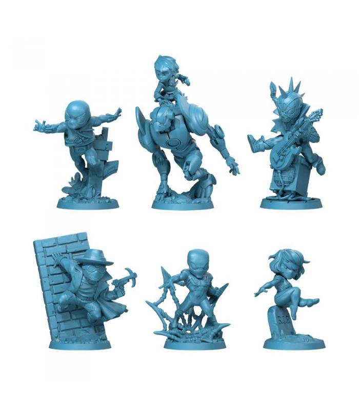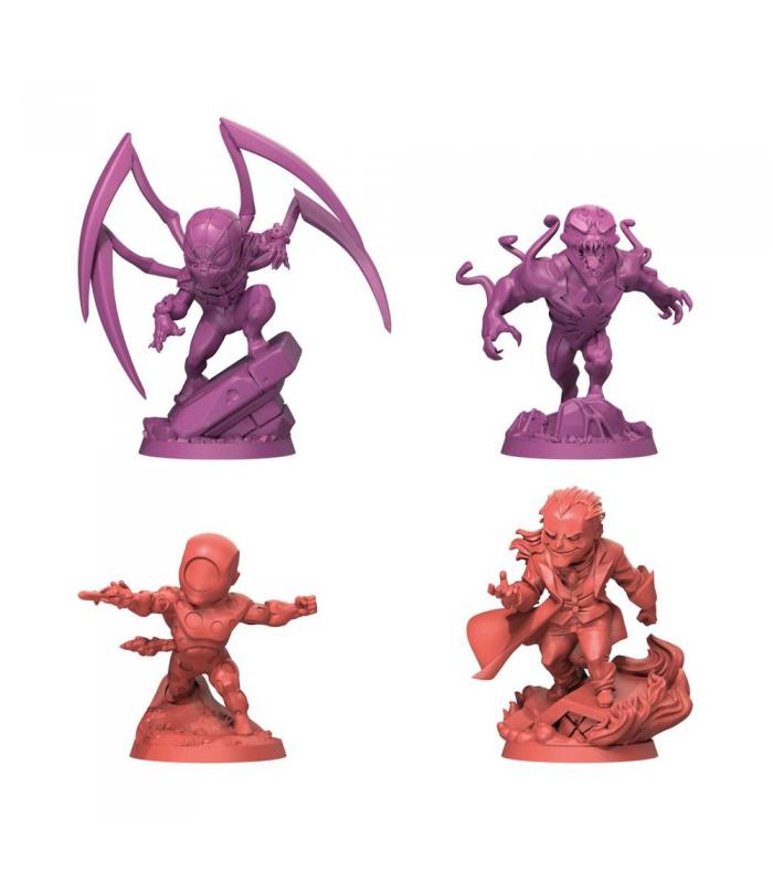 10 miniaturas muy detalladas - 215 cartas - 4 tableros de villano - 8 lugares - 1 guía de misiónes - 156 fichas - 1 medidor de villano y 1 reglamento.