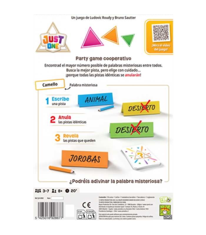 Just One es un divertido juego cooperativo de palabras, ideal para reuniones familiares o con amigos. En cada partida, los jugadores deben colaborar para que uno de ellos adivine una palabra secreta a partir de pistas escritas en secreto por los demás. Pero hay una regla clave: las pistas repetidas se eliminan, por lo que la originalidad y la estrategia son fundamentales.