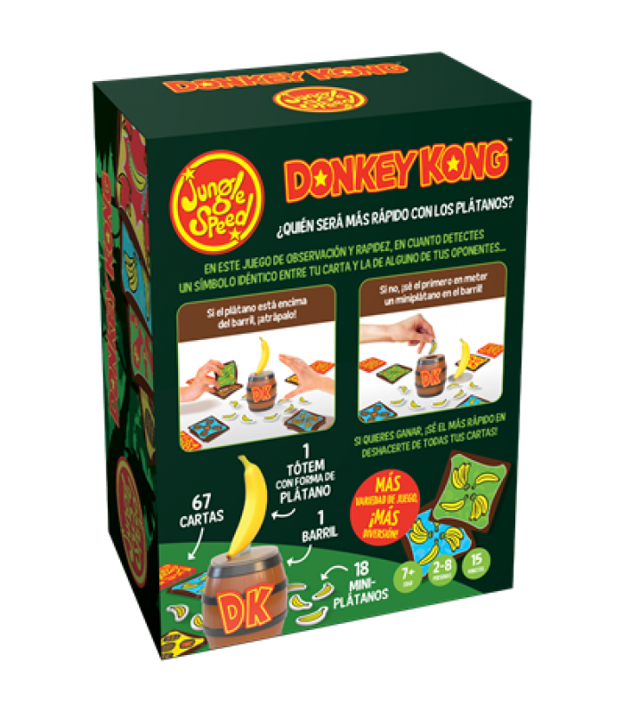 67 cartas, 1 tótem con forma de plátano, 1 barril, 18 miniplátanos