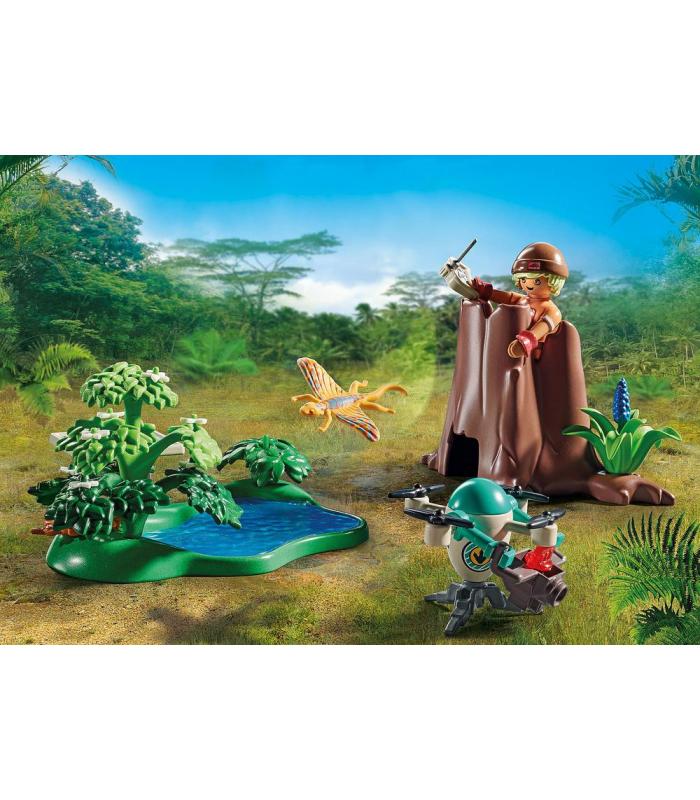 El set permite recrear escenas de observación en la naturaleza, donde el investigador se oculta dentro de un tronco para estudiar al Dimorphodon sin interrumpir su hábitat. Gracias al dron flexible con cámara, se obtienen **imágenes aéreas sin molestar al reptil volador**. Posteriormente, se pueden analizar muestras en el microscopio para enriquecer la experiencia educativa y de juego.