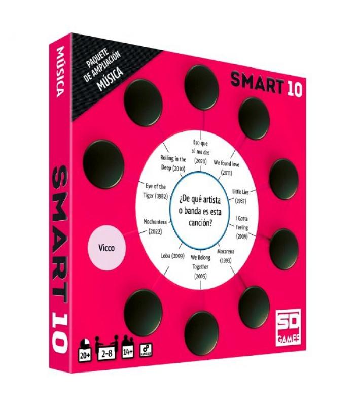 ¡Un nuevo conjunto de tarjetas de preguntas para el juego SMART 10!Contiene 50 tarjetas de doble cara con 100 nuevas preguntas y 1000 nuevas respuestas. Las preguntas abarcan todos los aspectos relacionados con la música: artistas, canciones, historia...Reemplazad las tarjetas de preguntas en la caja Smart con dos paquetes de ampliación temáticos o mezclad estas preguntas de música con la mitad de las tarjetas originales.Para poder usar estas preguntas se requiere tener el juego la caja Smart incluida en cualquier juego base de Smart10.Nota del editor: Nos encanta jugar con un reproductor de música y recordar las canciones de las preguntas... ¡aunque se nos alarguen las partidas cantando!