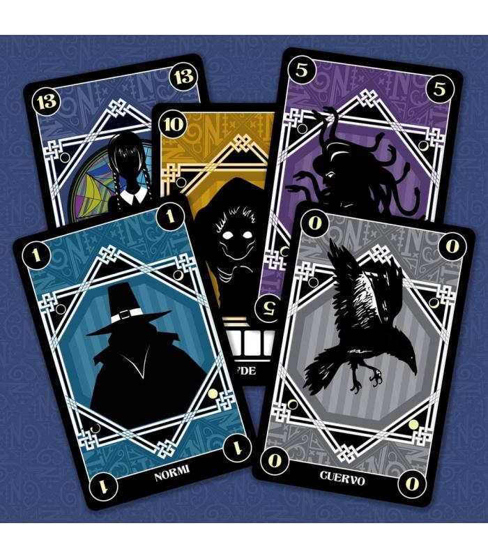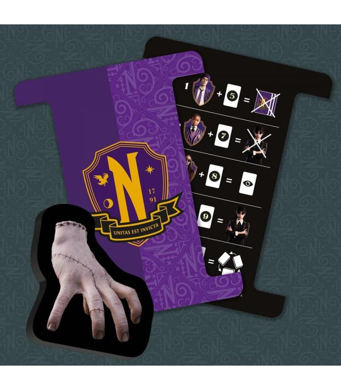 Vence a tus oponentes descartándote antes que ellos. Espera al momento más adecuado para jugar tus cartasmás altas, o arriésgate y afronta graves consecuencias. Pero cuidado: conocidos personajes de Miércoles te mantendrán en vilo. Después de todo, ¿qué es un juego sin algunos giros inesperados?Componentes-42 cartas de Excluido-6 cartas de ayuda-9 Cartas de Personaje-1 tablero de Excluido-1 tablero de Personaje-1 bloc de puntuación-1 Token de La Cosa