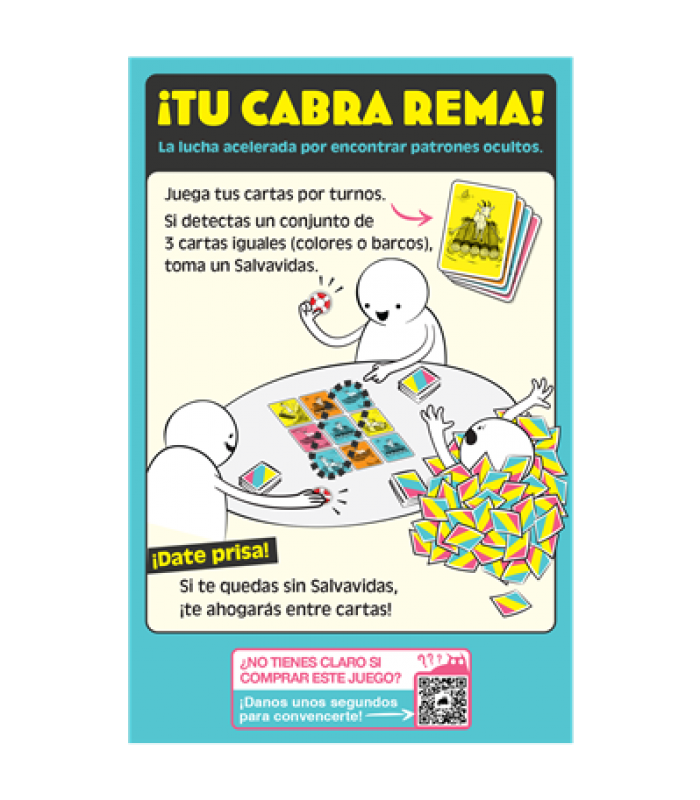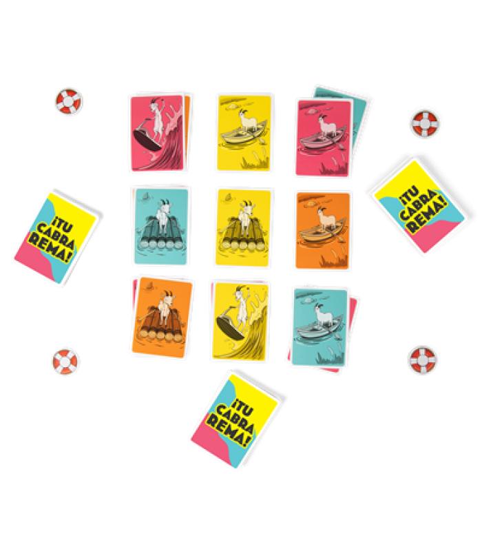 Todos jugaréis por turnos vuestras cartas en una cuadrícula de 3x3 sobre la mesa. Cuando haya 3 cartas iguales en una fila, columna o diagonal, toma rápidamente un Salvavidas. Pero ve deprisa: no hay suficientes para todos y, si eres el más lento, tendrás que quedarte con un montón de cartas.
