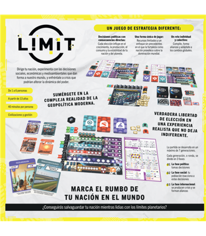 Límite es un juego competitivo de desarrollo de civilizaciones ambientado entre las décadas de 1850 y 2060 [(desde el inicio de la Revolución Industrial hasta el futuro próximo)] en el sistema mundial en el que vivimos, constreñido por unos recursos planetarios limitados.