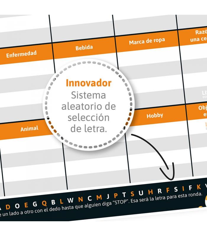 1. Elige una letra: Usa la lista de letras. Una vez alguien diga ¡STOP!, esa será la letra para esa ronda.