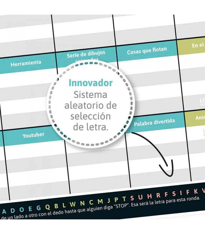 1. Elige una letra: Usa la lista de letras. Una vez alguien diga „¡STOP!“, esa será la letra para esa ronda.