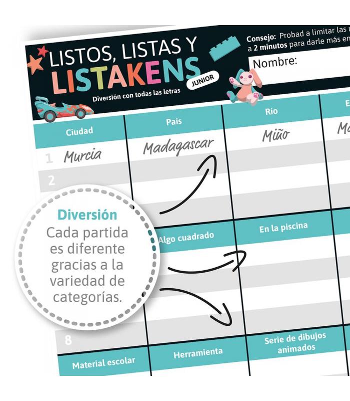 ¡Listos, Listas y Listakens lleva la diversión a otro nivel!32 categorías diferentes para darle ritmo a tus neuronas.Piensa rápido, ríe más. ¡La diversión está asegurada!Cómo se juega en 3 pasos: