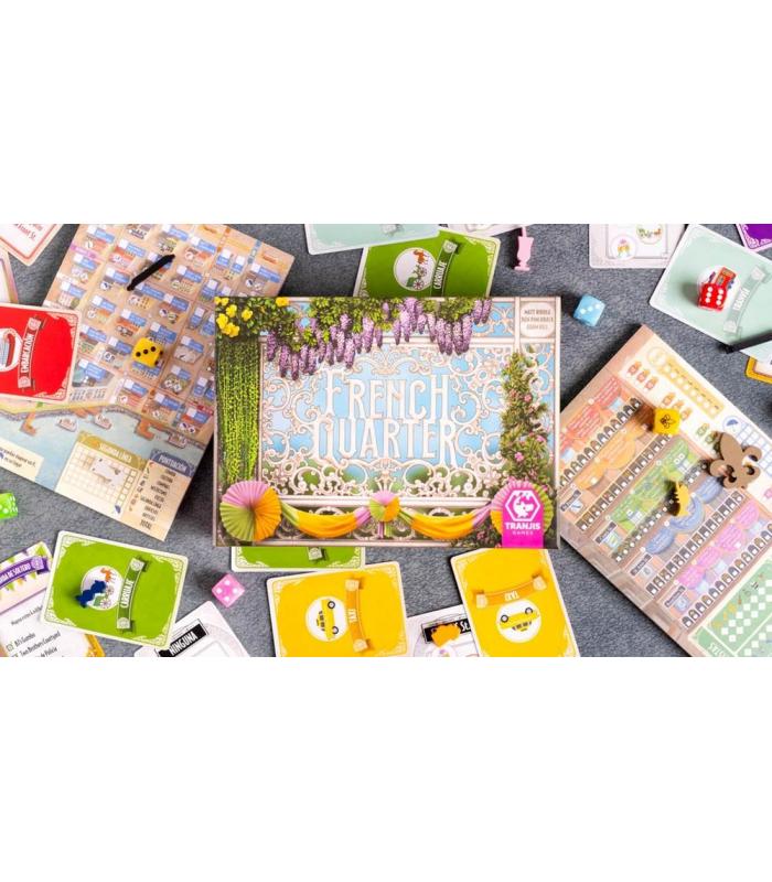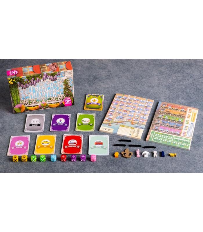 French Quarter incluye una amplia variedad de componentes que aportan dinamismo y rejugabilidad a cada partida. Desde dados de acción hasta cartas especiales, cada elemento está diseñado para enriquecer la experiencia y ofrecer partidas variadas.
