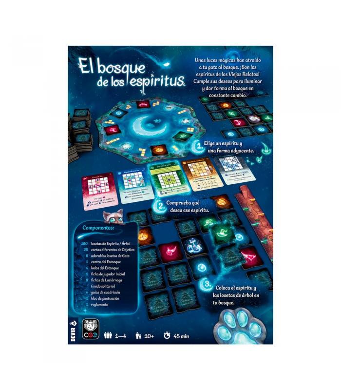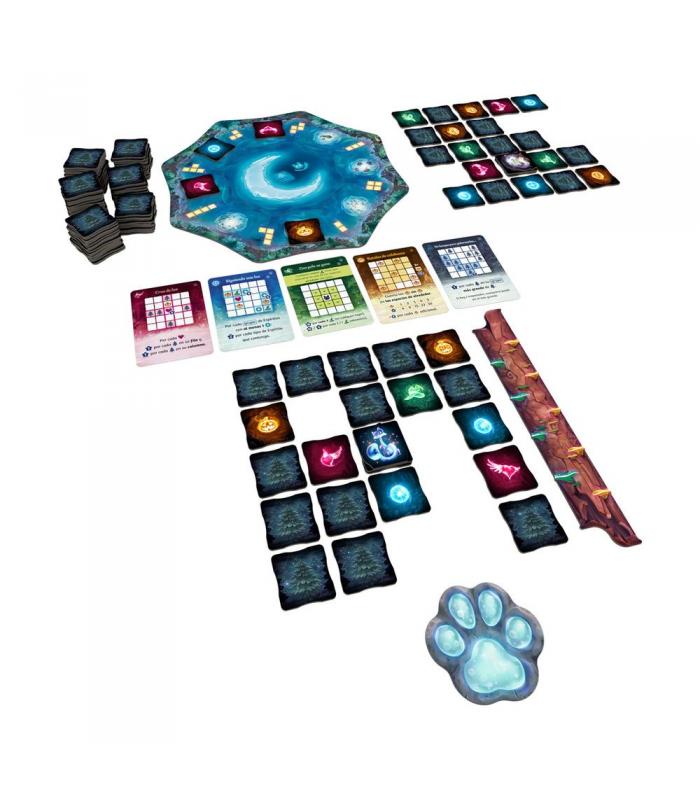 La noche cae y los espíritus empiezan a danzar alrededor del estanque. Usa a tu gato con sabiduría para atraer a tu parcela de bosque a los espíritus adecuados en el mejor momento para puntuar más armonía que tus rivales. ¡Sed bienvenidos al bosque de los espíritus!