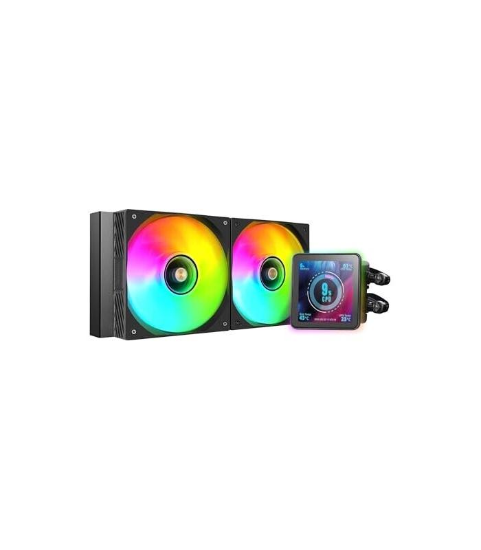 Lleva tu ordenador al siguiente nivel con el nuevo referente en refrigeración líquida AIO. ML-VISIONPRO240 fusiona un rendimiento térmico de élite con un diseño espectacular gracias a sus 2x ventiladores ARGB Infinity Mirror y su pantalla IPS de 4” extraíble con base magnética y totalmente personalizable, que puedes colocar dentro o fuera de la torre para lograr el máximo impacto visual. Compatible con Intel y AMD y preparado para CPUs de hasta 500W TDP, este kit está creado para quienes exigen máxima potencia, estilo y control absoluto.