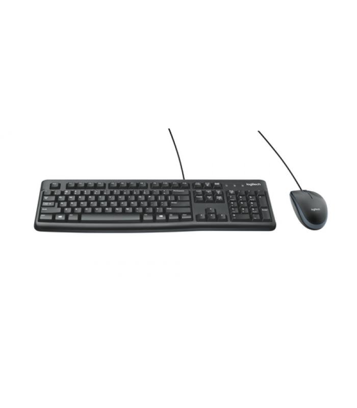 Logitech Desktop MK120, ES, Alámbrico, USB, QWERTY, Negro, Ratón incluido