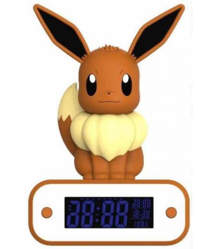 Teknofun presenta este reloj despertador con lámpara de eevee - personaje del videojuego pokémon. se trata de un reloj despertador digital con lámpara led - que indica la fecha - la hora y la temperatura de la habitación. requiere 3 pilas aaa (no incluidas). incluye cable usb.