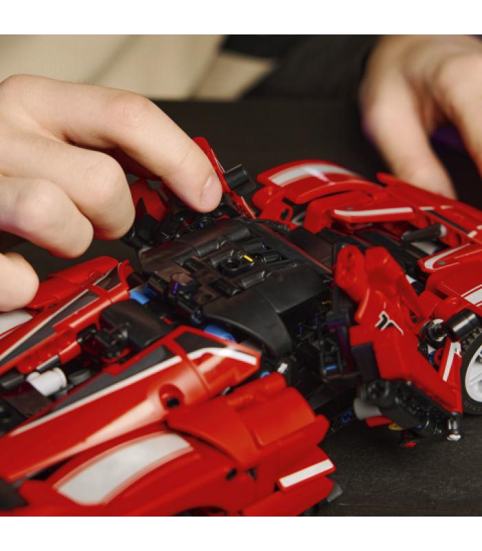 • Puertas de mariposa: Los peques se lo pasarán genial dando forma todos los detalles de este coche de juguete Ferrari, como las puertas de mariposa, el capó abatible y la cubierta del motor que se abre