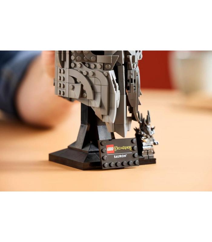 - CONTENIDO DE LA CAJA: Incluye todo lo que necesitas para crear una réplica del casco de Sauron, más una base de exposición y una placa identificativa, junto con una minifigura de Sauron™ con el Anillo Único
