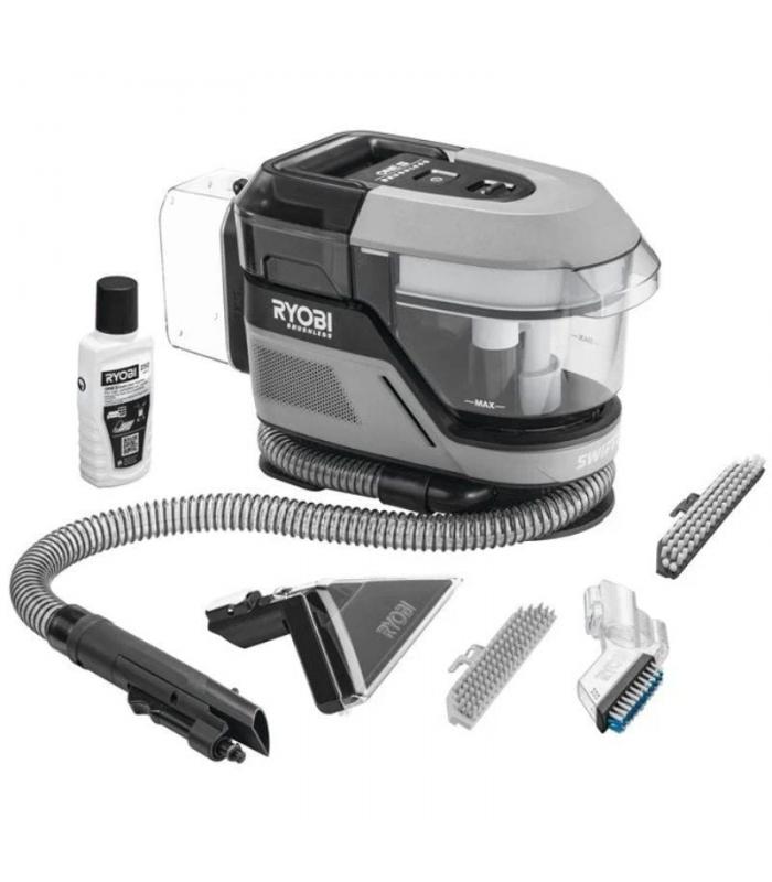 Elimine las manchas incrustadas con el limpiador de tapicerías sin escobillas Swift Clean ONE+™ de RYOBI® Es ideal para eliminar manchas incrustadas en tejidos domésticos y de automoción. Gracias a la manguera flexible y a los múltiples accesorios incluidos, podrá eliminar manchas y derrames en cualquier ángulo con facilidad y conseguir resultados impresionantes.