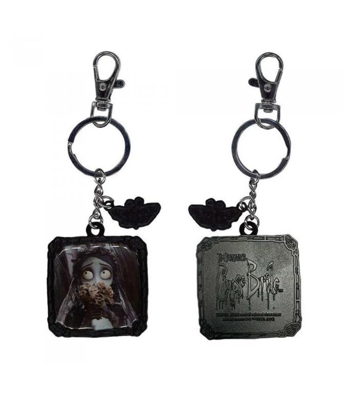 Este llavero presenta una forma cuadrada y un diseño visual impactante, centrado en el personaje de Emily, la icónica Novia Cadáver. Es un homenaje visual a una de las películas más queridas de Burton, perfecto para fans del cine de animación gótica y del diseño alternativo.