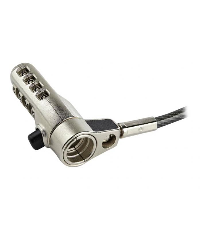 Este cable destaca por su amplia compatibilidad, permitiendo asegurar dispositivos de diferentes fabricantes gracias a su soporte para los principales tipos de ranuras de seguridad. Su sistema de cierre por combinación elimina la necesidad de llaves, ofreciendo una gestión más cómoda y segura.