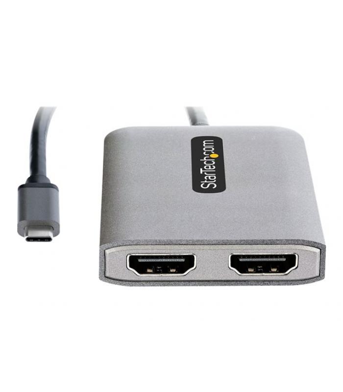 El hub USB-C a HDMI de StarTech.com es una solución práctica y eficiente para quienes necesitan ampliar su espacio de trabajo con múltiples pantallas. Diseñado para entornos profesionales y domésticos, permite conectar hasta dos monitores HDMI con resolución 4K desde un único puerto USB Tipo C compatible con modo alternativo DisplayPort. Su compatibilidad con tecnología MST lo convierte en una herramienta ideal para mejorar la productividad.